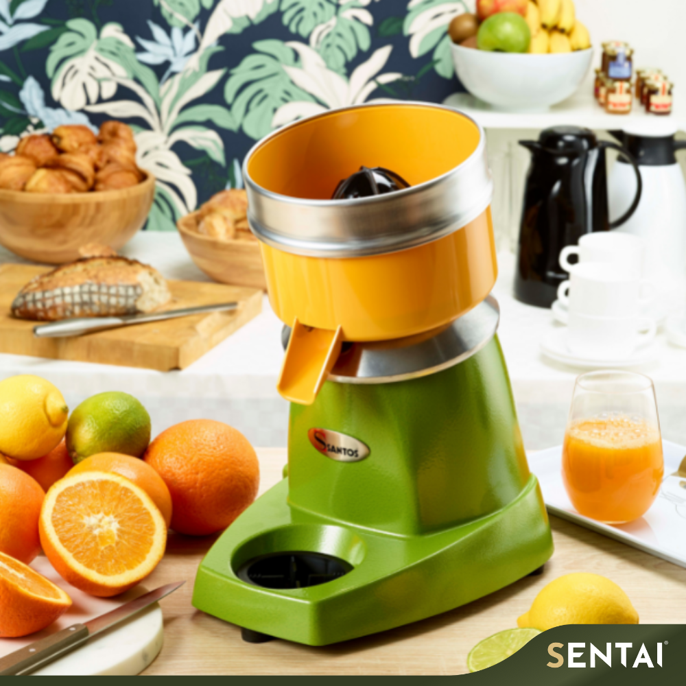 The Santos genuine citrus juicer has been a trusted brand since 1954. It is ideal for use in a variety of settings, including health food stores, hotels, bars, and restaurants.
